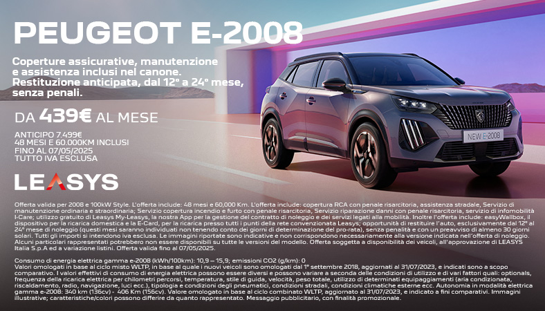 Ci piace mantenere il nostro rapporto con te e solo con te! Ricevi offerte, promozioni, eventi e altri contenuti interessanti dai nostri marchi. Restiamo in contatto! Se vuoi saperne di più su cosa faremo con i tuoi dati, consulta le sezioni 4.c) della Privacy Policy. E non preoccuparti! Potrete cambiare idea in qualsiasi momento direttamente su https://www.preferences.stellantis.com.