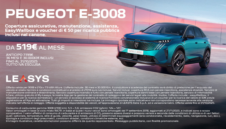 Ci piace mantenere il nostro rapporto con te e solo con te! Ricevi offerte, promozioni, eventi e altri contenuti interessanti dai nostri marchi. Restiamo in contatto! Se vuoi saperne di più su cosa faremo con i tuoi dati, consulta le sezioni 4.c) della Privacy Policy. E non preoccuparti! Potrete cambiare idea in qualsiasi momento direttamente su https://www.preferences.stellantis.com.